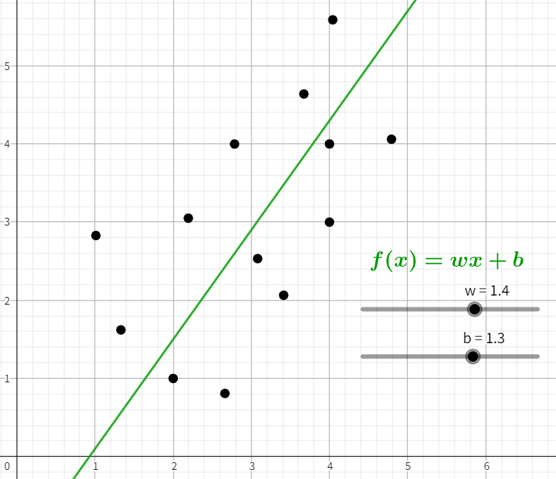 很多时候我们难以找到一个完全吻合所有数据的函数,但没有关系,我们只需从结果上看尽量近似就行了,比如像这样: