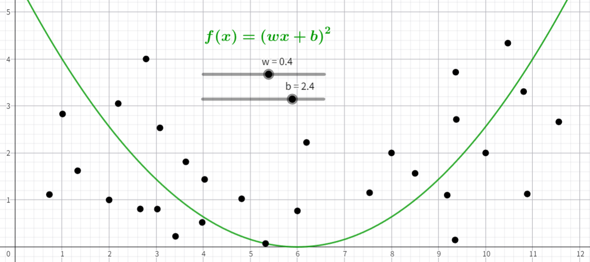 \[\frac{1}{N} \sum^{N}_{i = 1} {(y_i - \hat{y})}^2\]这是一个关于 $w, b$ 的函数: